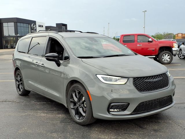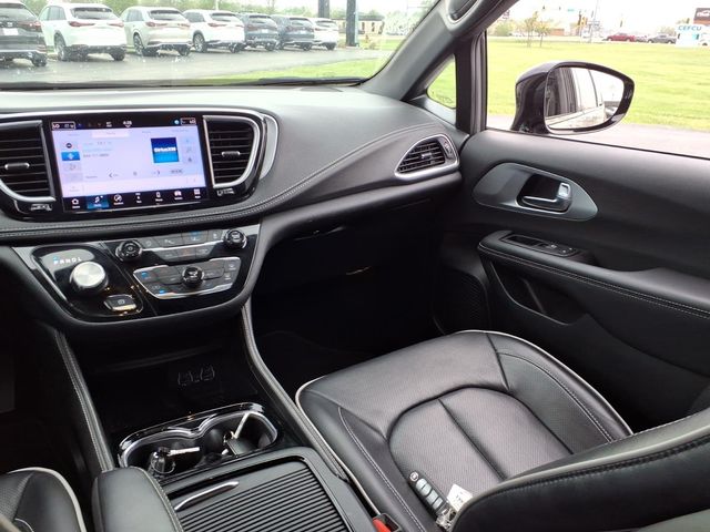 Quick Order Package 27P, 13 Speakers, 3.25 Axle Ratio, 3rd row seats: split-bench, 4-Wheel Disc Brakes, ABS brakes, Air Conditioning, Alloy wheels, AM/FM radio: SiriusXM 360L, Apple CarPlay/Android Auto, Audio memory, Auto-dimming Rear-View mirror, Automatic temperature control, Black Seats, Brake assist, Bumpers: body-color, Compass, Delay-off headlights, Driver door bin, Driver vanity mirror, Driver's Seat Mounted Armrest, Dual front impact airbags, Dual front side impact airbags, Electronic Stability Control, Emergency communication system: Chrysler Connect, Four wheel independent suspension, Front anti-roll bar, Front Bucket Seats, Front dual zone A/C, Front fog lights, Front reading lights, Fully automatic headlights, Garage door transmitter, Heated door mirrors, Heated front seats, Heated rear seats, Heated steering wheel, Illuminated entry, Integrated Active Noise Cancellation, Knee airbag, Low tire pressure warning, Manufacturer's Statement of Origin, Memory seat, Nappa Leather Bucket Seats with S Logo, Navigation System, Occupant sensing airbag, Outside temperature display, Overhead airbag, Overhead console, Panic alarm, ParkView Rear Back-Up Camera, Passenger door bin, Passenger seat mounted armrest, Passenger vanity mirror, Power door mirrors, Power driver seat, Power Liftgate, Power moonroof, Power passenger seat, Power steering, Power windows, Radio data system, Radio: Uconnect 5 Nav with 10.1" Display, Rain sensing wipers, Rear air conditioning, Rear reading lights, Rear window defroster, Rear window wiper, Reclining 3rd row seat, Remote keyless entry, Roof rack, Security system, Speed control, Split folding rear seat, Spoiler, Steering wheel mounted audio controls, Tachometer, Telescoping steering wheel, Tilt steering wheel, Touring Suspension, Traction control, Trip computer, Turn signal indicator mirrors, Variably intermittent wipers, Ventilated front seats, Voltmeter, and Wheels: 20" x 7.5" S-Model Aluminum Design 1.